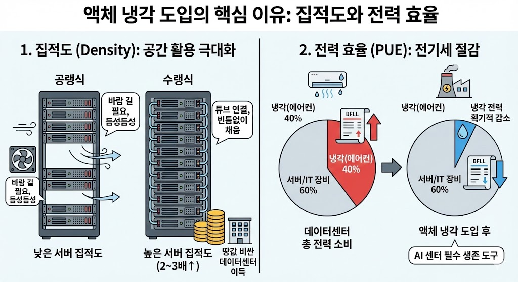 기업들이 비싼 돈을 들여 액체 냉각으로 넘어가는 이유는 단순히 발열 때문만이 아닙니다.