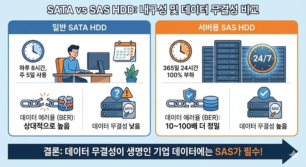 "SATA 하드를 서버에 끼우면 금방 고장 나나요?" 당장은 아니지만, 확률적으로 그렇습니다.