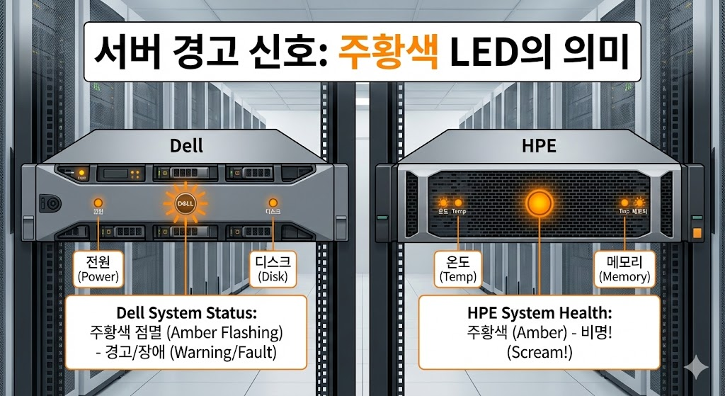 오늘은 양대 산맥인 "Dell(델)"과 "HPE(HP)" 서버가 보내는 구조 신호, LED 경고등을 해석하는 방법을 알아봅니다.