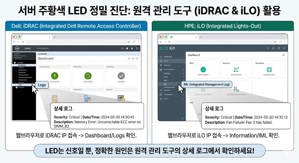 LED는 단순히 "어디가 아프다" 정도만 알려줍니다. 정확한 처방을 위해서는 원격 관리 도구에 접속해야 합니다.