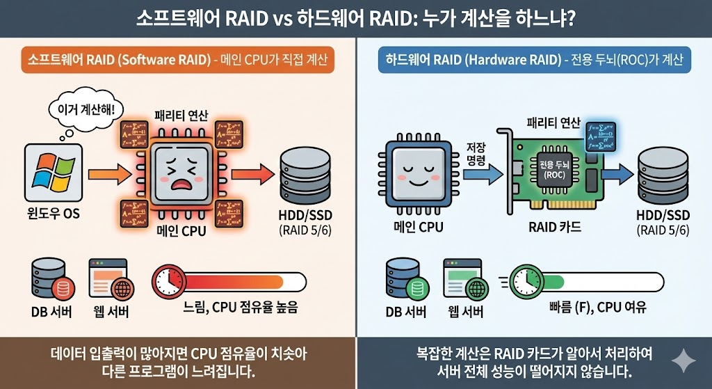 윈도우나 리눅스에서 무료로 RAID를 묶을 수 있는데, 왜 굳이 돈을 주고 'RAID 컨트롤러 카드'를 따로 사서 끼우는 거지?"
