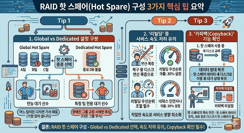 RAID를 구성할 때 핫 스페어 설정에서 가장 고민하는 부분과 팁을 공유합니다.