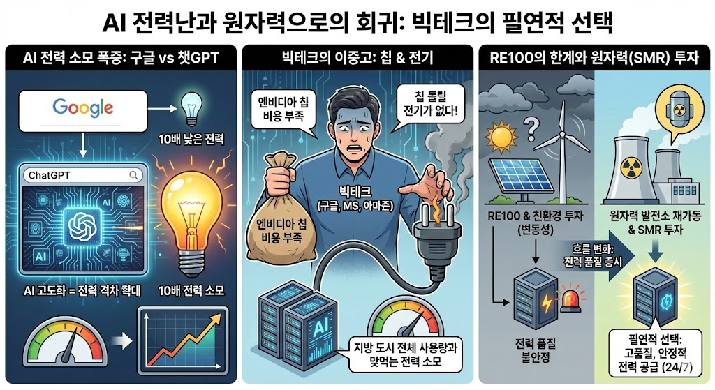 마이크로소프트가 원자력 발전소 재가동 계약을 체결하고, 빅테크들이 앞다퉈 소형 모듈 원전(SMR) 기업에 투자를 시작했습니다.