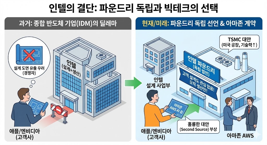 이 결정 덕분에 아마존(AWS)이 인텔 18A 공정을 사용해 자체 AI 칩을 만들기로 계약했습니다.