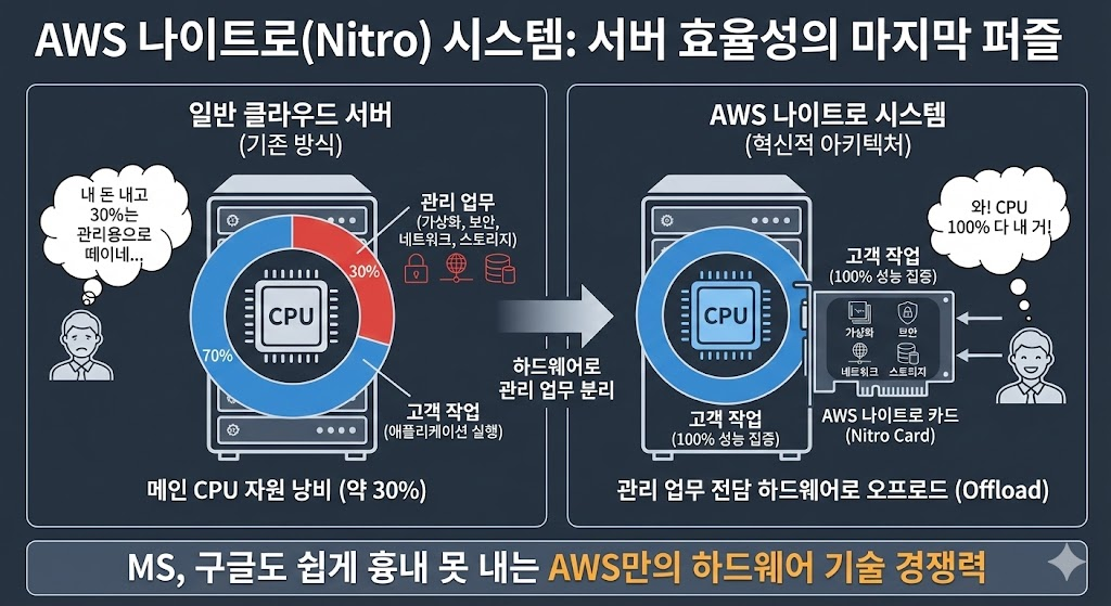 이는 마이크로소프트나 구글도 쉽게 흉내 내지 못하는 AWS만의 하드웨어 아키텍처 기술입니다.