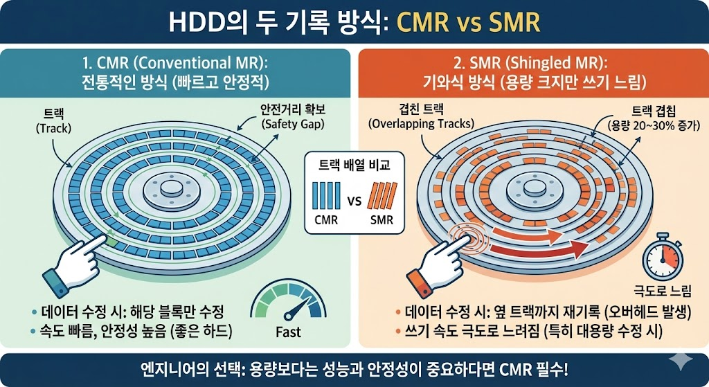 속도가 빠르고 안정적입니다. 우리가 알던 '좋은 하드'입니다. - SMR (Shingled Magnetic Recording):