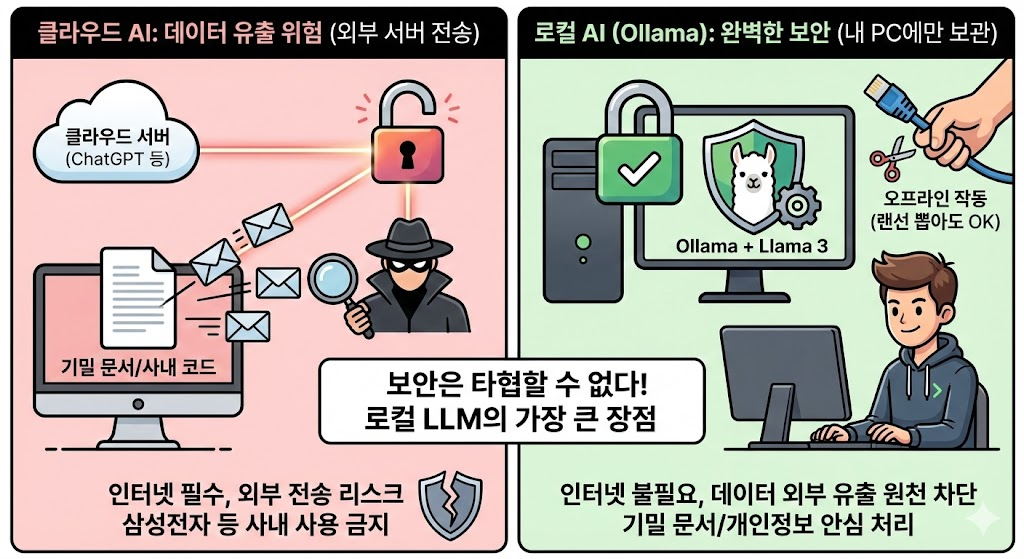 클라우드 AI에게 질문을 한다는 것은, 내 질문 데이터가 외부 서버로 전송된다는 것을 의미하기 때문입니다.